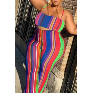 Lovely Trendy Striped Multicolor Plus Size Two-piece Pants Set