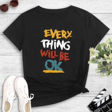 Lovely Leisure O Neck Letter Print Black T-shirt