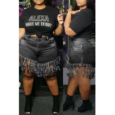 Lovely Stylish Tassel Design Black Plus Size Shorts