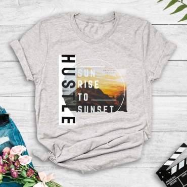 Lovely Leisure O Neck Letter Print Grey T-shirt
