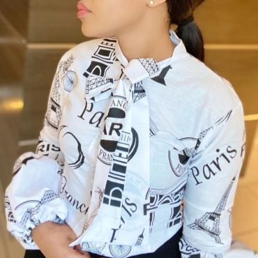 Lovely Stylish Letter Print White Blouse