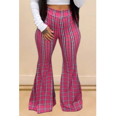 Lovely Trendy Grid Print Pink Pants