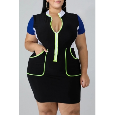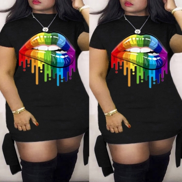 Lovely Casual Lip Print Black Mini Plus Size Dress