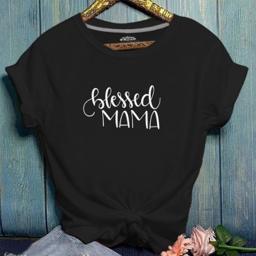 Lovely Casual O Neck Letter Print Black T-shirt