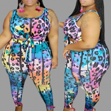 Lovely Leisure Print Multicolor Plus Size Two-piece Pants Set