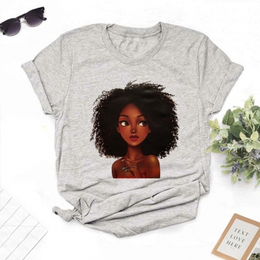 Lovely Leisure O Neck Print Grey T-shirt