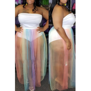 Lovely Casual See-through White Plus Size Two-piece Skirt Set