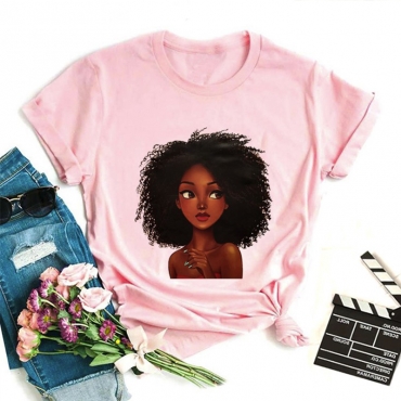 Lovely Leisure O Neck Print Pink T-shirt