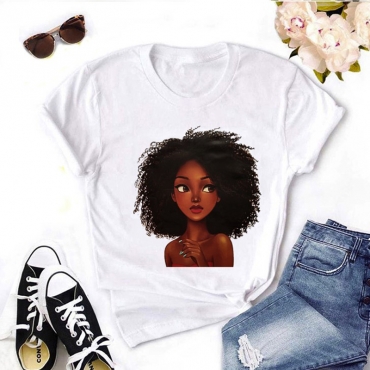 Lovely Leisure O Neck Print White T-shirt