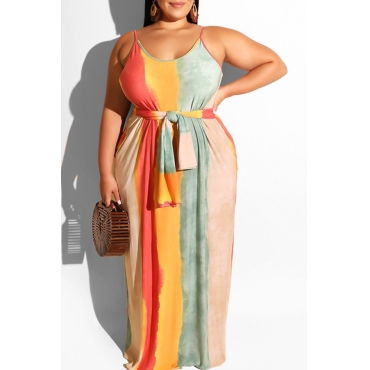 Lovely Casual Striped Multicolor Maxi Plus Size Dress