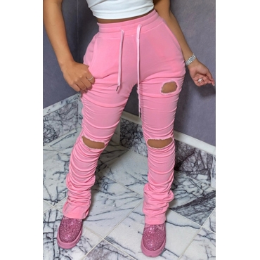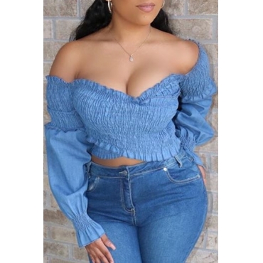 Lovely Stylish Broken Holes Baby Blue Knee Length Plus Size Dress