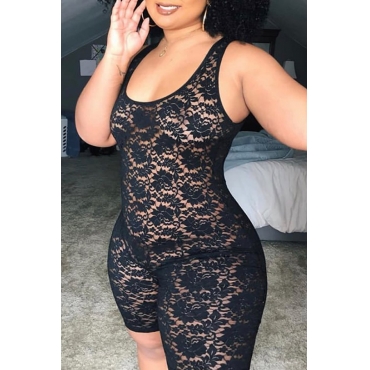Lovely Sexy See-through Black Plus Size One-piece Romper