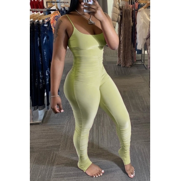 Lovely Sexy Fold Design Light Green One-piece Jumpsuit
