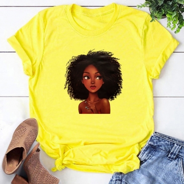Lovely Casual Eye Print Yellow Mini Plus Size Dress