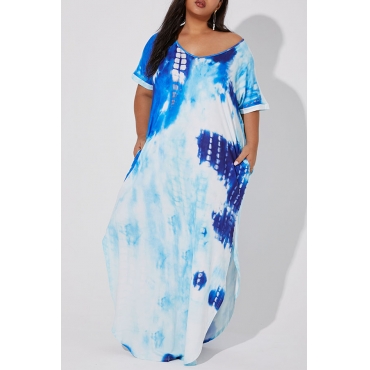 Lovely Casual Tie-dye Blue Ankle Length Plus Size Dress