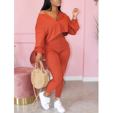 Lovely Casual Zipper Design Jacinth Two Piece Pants Set