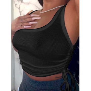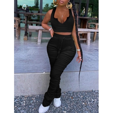 Lovely Sexy Fold Design Skinny Black Two Piece Pants Set