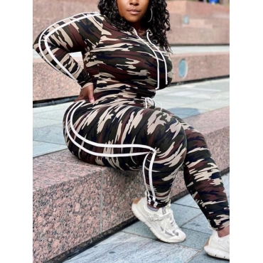 Lovely Sportswear Patchwork Camo Print Plus Size Two-piece Pants Set