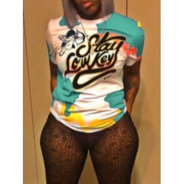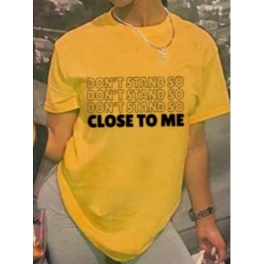 Lovely Casual O Neck Letter Print Yellow Plus Size T-shirt