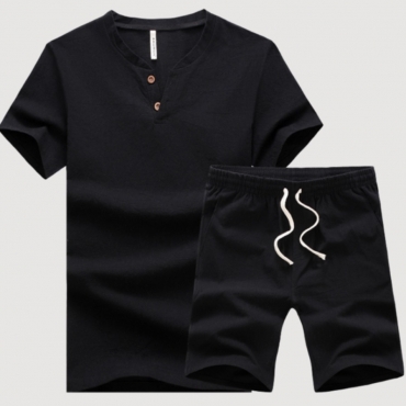 Lovely Men Leisure O Neck Lace-up Black Two-piece Shorts Set