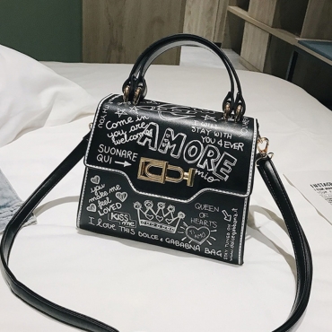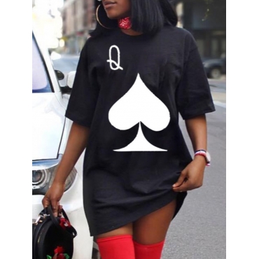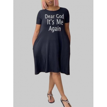 Lovely Casual O Neck Letter Print Black Knee Length Plus Size Dress