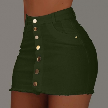 Lovely Casual Buttons Design Green Skirt