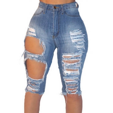 Lovely Casual Broken Holes Deep Blue Plus Size Shorts