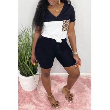 Lovely Sportswear Patchwork Black Two-piece Shorts Set