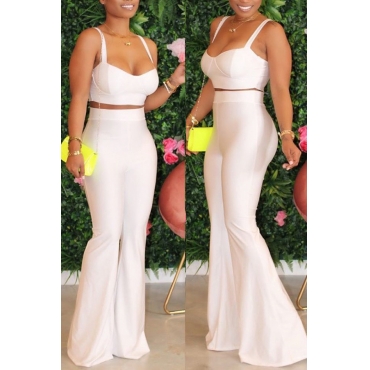 Lovely Casual Basic White Two-piece Pants Set