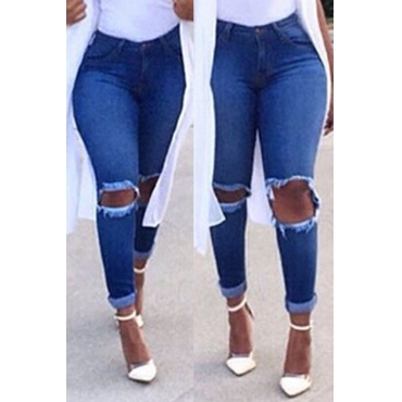 Lovely Stylish Hollow-ou Blue Jeans