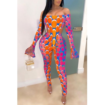 Lovely Casual Dew Shoulder Print Orange Two-piece Pants Set