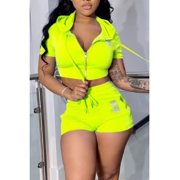 Lovely Sportswear Zipper Design Yellow Two-piece Shorts Set