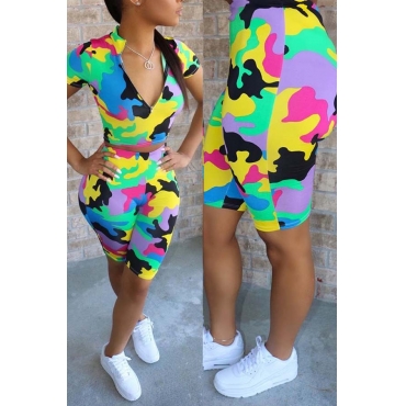Lovely Sportswear Camo Print Two-piece Shorts Set