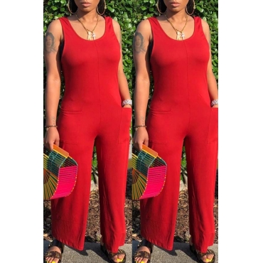 Lovely Casual Pocket Patched Red One-piece Jumpsuit