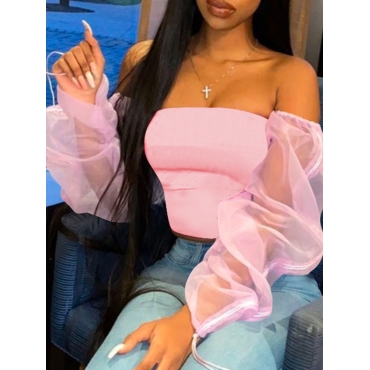 Lovely Trendy Dew Shoulde Patchwork Pink Blouse