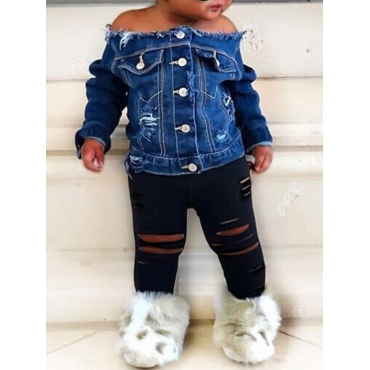 Lovely Street Buttons Design Blue Girl Two-piece Pants Set