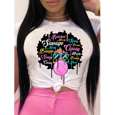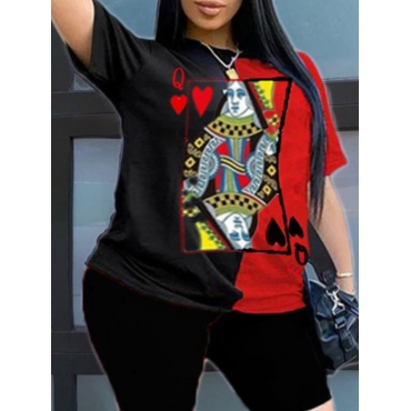 Lovely Casual O Neck Print Patchwork Red Plus Size T-shirt