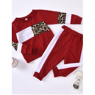 Lovely Sportswear O Neck Print Patchwork Red Girl Two-piece Pants Set