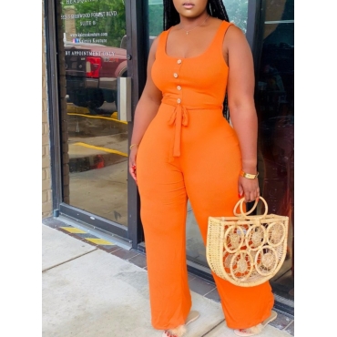 Lovely Leisure U Neck Buttons Design Jacinth Plus Size One-piece Jumpsuit