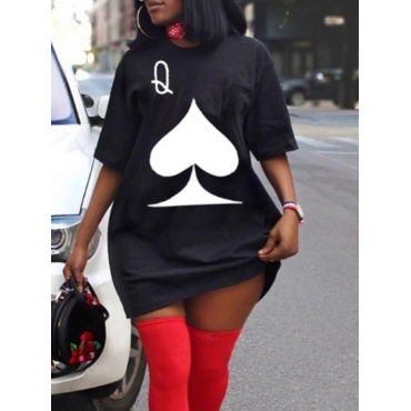 Lovely Leisure O Neck Print Black Mini Plus Size Dress