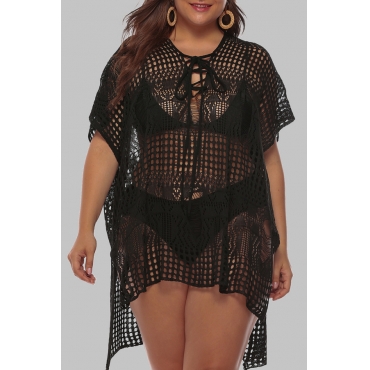 Lovely Chic Hollow-out Black Plus Size Beach Dress
