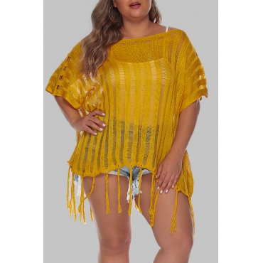 Lovely Casual Tassel Yellow Plus Size Beach Blouse