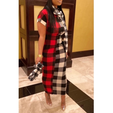 Lovely Chic O Neck Plaid Print Red Mid Calf Dress