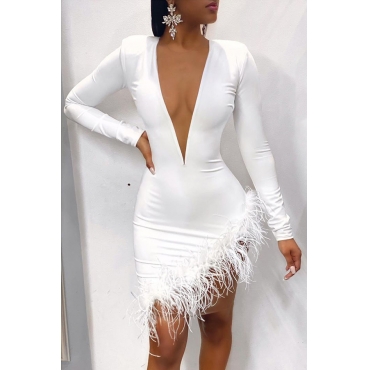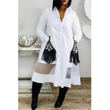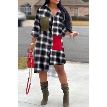 Lovely Chic Turndown Collar Plaid White Mid Calf Dress