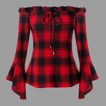 Lovely Casual Plaid Print Red Plus Size Blouse