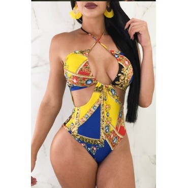 Lovely Hollow-out Print Multicolor One-piece Swimsuit