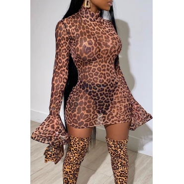 Lovely Trendy O Neck Drawstring Brown Mini Dress