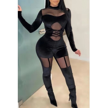 Lovely Sexy Patchwork Black One-piece Jumpsuit