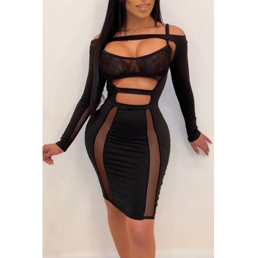 Lovely Sexy Hollow-out Black Mini Dress