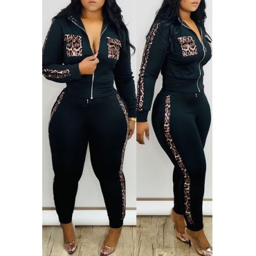 Lovely Casual Patchwork Black Two-piece Pants Set